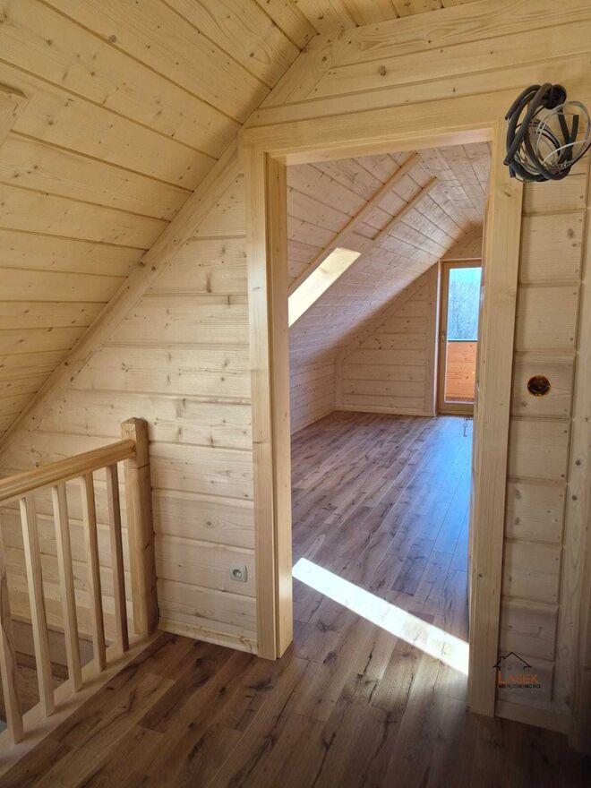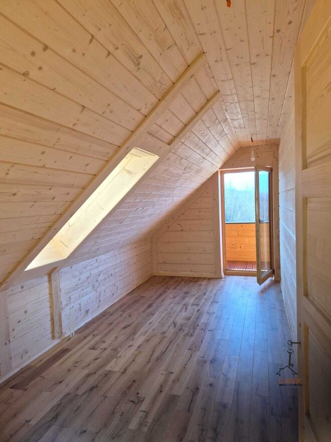 Prezentujemy ofertę sprzedaży domu z bala w Zagórniku. Uroczy dom z bala świerkowego, położony jest w Zagórniku na niezwykle widokowej działce o powierzchni 1053 m2. Ogrodzenie zostało wykonane bardzo solidnie z automatycznie rozsuwaną bramą. Dookoła trawnik wraz z podjazdem dla kilku samochodów. Powierzchnia domu to 120 m . Na dole jest miejsce na otwarty salon wraz z aneksem kuchennym i jadalnią, wyjście na taras, oraz łazienka z wc. Powierzchnia parteru to 62 m. Poddasze ( 57,8 m) jest przygotowana już do zamieszkania, są położone podłogi z dębowej deski barlineckiej, znajdują się tam 3 pokoje oraz łazienka do wykończenia. W domu jest również przygotowany komin do podłączenia pod małą koze lub kominek. Schody również są bardzo solidne, jesionowe. Ogrzewanie w całym domu jest gazowe z ogrzewaniem podłogowym. Dach jest ocieplony wełną o grubości 26 cm. Pokrycie dachu zostało wykonane z blachodachówki z posypką wulkaniczną. Dom jest doskonałą propozycją dla tych, którzy szukają spokoju, ciszy od zgiełku miasta. Jest też wspaniałą możliwością prowadzenia agroturystyki, wynajmu. Ze względu na położenie tego domu, skąd blisko jest do tras i szlaków Beskidu Niskiego, czy na Czarny Groń, dom ten może być świetną inwestycją pod wynajem krótkoterminowy. W ogrodzie jest zamontowana studnia, która zbiera wody opadowe z dachu, i będzie idealna do podlewania ogrodu. Wszystkie media miejskie : gaz, woda, prąd, kanalizacja. Zapraszamy do prezentacji tej nieruchomości . Osoba odpowiedzialna za ofertę to Izabela Płonka, tel: 600 - pokaż numer telefonu - . ....................................................................................................................................................................................................................... Przed prezentacją nieruchomości zawierana jest umowa pośrednictwa. Zakup lub wynajem nieruchomości za pośrednictwem naszego biura wiąże się z koniecznością zapłaty prowizji. ....................................................................................................................................................................................................................... W naszym biurze pomożemy Państwu przeprowadzić całą procedurę kredytową. Współpracujemy z niezależnymi doradcami kredytowymi, którzy pomogą wybrać najlepszy kredyt z najniższą marżą. ..........................................................................................................................................................................................................................Numer licencji pośrednika odpowiedzialnego za ofertę: 14941